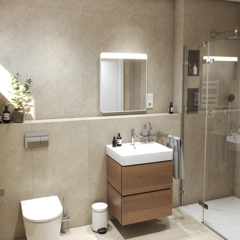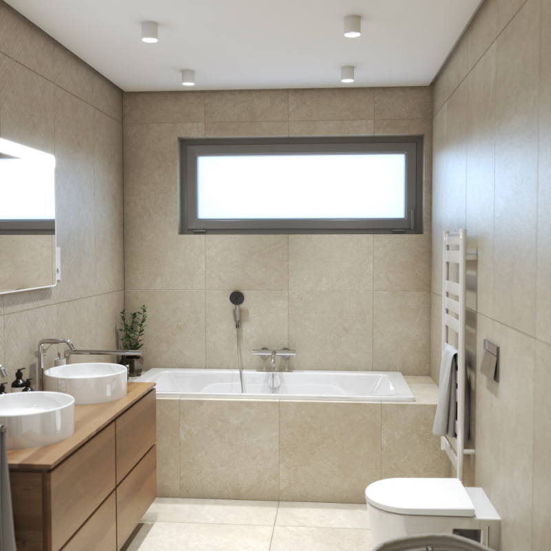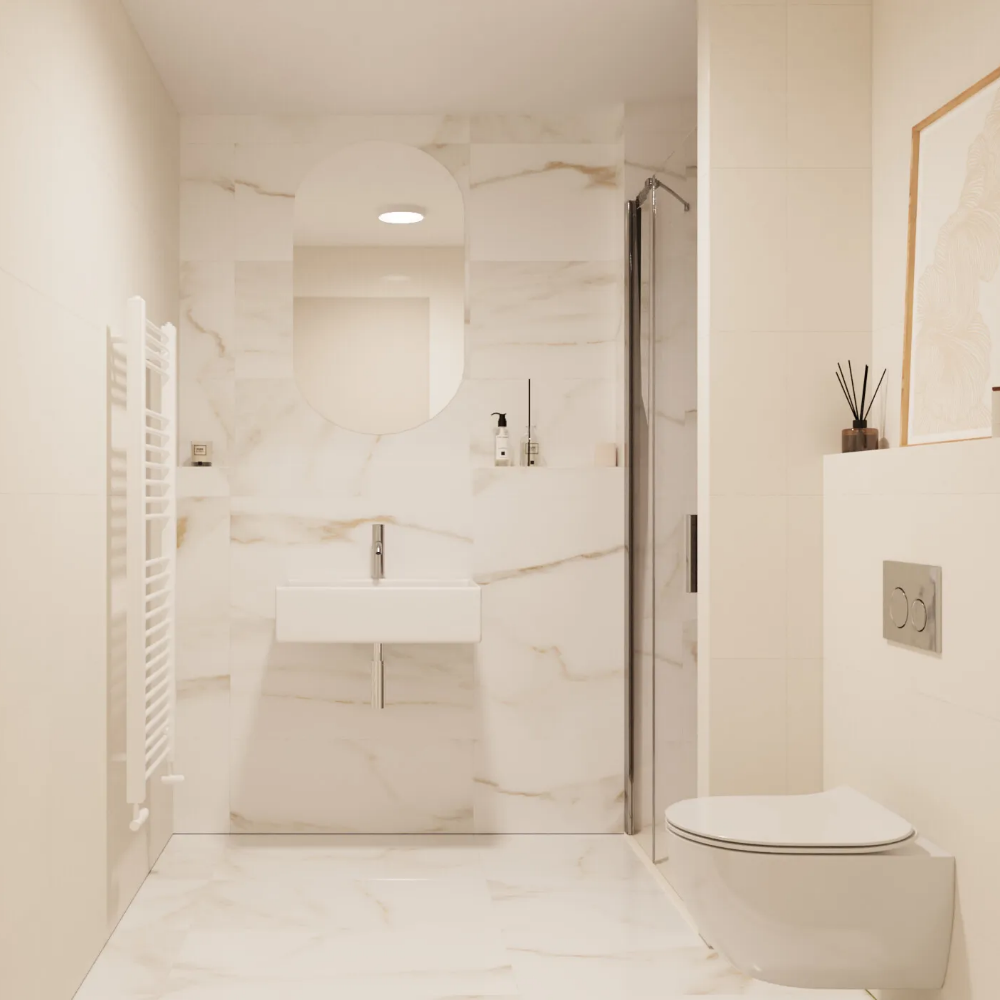 Apartmány prechádzajú kompletnou obnovou vrátane kúpeľní, ktoré patria medzi najviac využívané časti každého ubytovania. Do projektu dodávame sanitu, obklady a dlažby, aby nové priestory pôsobili moderne a zároveň boli pripravené na intenzívnu prevádzku. Zvolené riešenia zvýšia kvalitu, odolnosť a estetiku apartmánov a prirodzene zapadnú do celkového charakteru rezortu, ktorý spája relax, prírodu a pohodlie pre hostí.